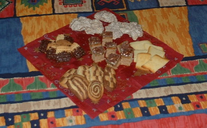 Honig mit Farinzucker erwärmen und wieder abkühlen lassen. Unter Rühren die Eier, das ausgeschabte Mark der Vanilleschote, Zimt, abgeriebene Zitronenschale, Likör und das mit Backpulver vermischte Mehl dazugeben. Die Prise Salz nicht vergessen. Die Teigmasse auf ein gefettetes Backblech streichen und im vorgeheizten Backofen bei 200° Celsius etwa 20 Minuten backen. Den noch heissen Boden mit der glattgerührten Konfitüre aprikotieren und abkühlen lassen. Das Marzipan so ausrollen, dass es den Boden vollständig bedeckt und über diesen legen, dabei sanft andrücken. Die Kuvertüre im Wasserbad schmelzen lassen und die Mandelstifte dazugeben. Diese Mischung noch heiss auf den Kuchen verteilen.
